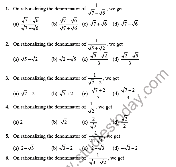 Cbse Class 9 Maths Number Systems Mcqs Set A Multiple Choice Questions For Number System