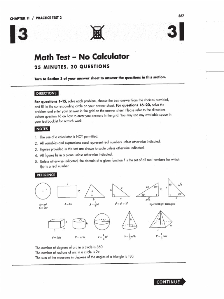 Sat Math Practice Test 4 Pdf 3 3 Math Test No Calculator 25 M I Nu Tes 2 0 Questions Turn To Section 3 Of Your Answer Sheet To Answer The Questions In Course Hero